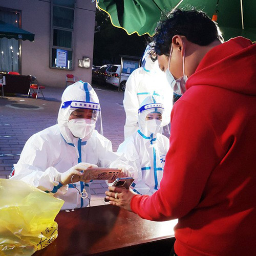 “第一次穿上‘大白服’有點(diǎn)不適應(yīng),從早到晚不停呼喊,白班夜班交替,有時(shí)飯來(lái)不及吃。當(dāng)有人對(duì)我說(shuō)謝謝‘大白’時(shí),我特別開心。”技師學(xué)院志愿者劉許說(shuō)?!拔逡弧奔倨冢本╇娍?0名下沉干部承擔(dān)所在核酸檢測(cè)點(diǎn)維持秩序、衛(wèi)生消殺、身份證登記等工作。他們說(shuō):“我們度過(guò)了一個(gè)不同尋常的‘五一’,這個(gè)勞動(dòng)節(jié)過(guò)得特別有意義?!?/p>