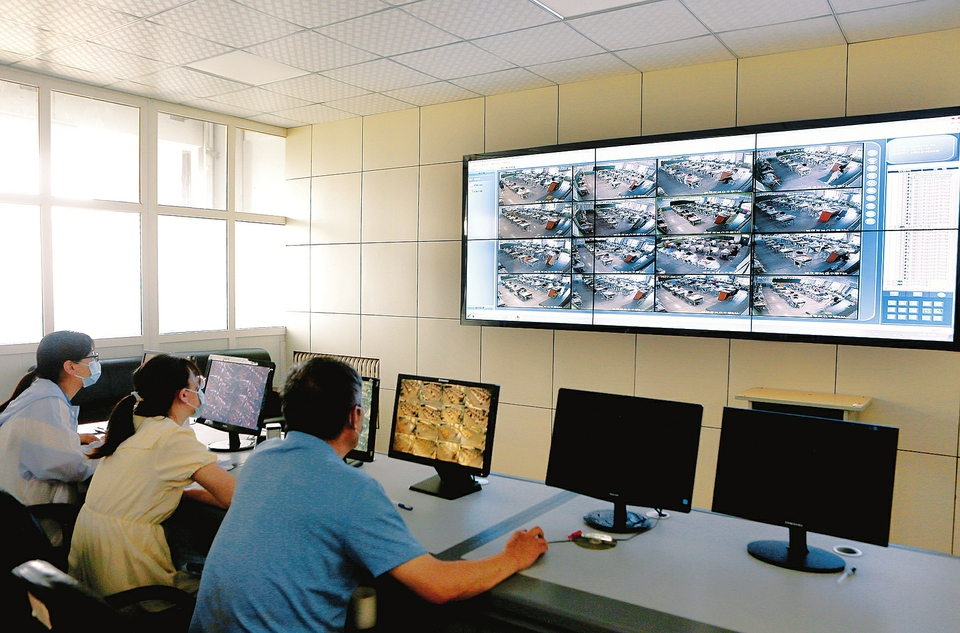 6月20日,晉城市鳳臺(tái)中學(xué)考點(diǎn),工作人員正通過(guò)監(jiān)控查看考場(chǎng)情況。