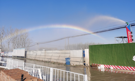 針對項(xiàng)目施工的這些特點(diǎn),項(xiàng)目部自主研發(fā)了高壓抑塵消防霧炮裝置,該裝置平時主要是抑制揚(yáng)塵,凈化空氣,遇到火災(zāi)時還是重要的消防工具。