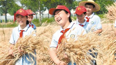 安徽省淮北市濉溪縣蒙村小學組織學生走進麥收現(xiàn)場,讓學生在田間課堂真切地感受勞動的辛苦和糧食的寶貴。