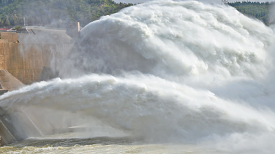 圖為29日,黃河小浪底水庫出水口。據(jù)介紹,2022年汛前黃河調(diào)水調(diào)沙于19日啟動,預計歷時20天左右。
