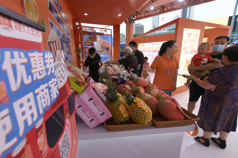 “618杭州拱墅消費(fèi)嘉年華”活動(dòng)上,消費(fèi)者在選購水果。李忠攝