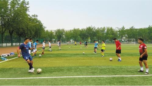 7月12日,西安郵電大學(xué)男子足球隊備戰(zhàn)省十七運會大學(xué)生組比賽訓(xùn)練。 本報記者 毛毛攝