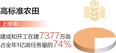 種子耕地農(nóng)機(jī)基礎(chǔ)進(jìn)一步夯實(shí),農(nóng)業(yè)綜合生產(chǎn)能力不斷提升。種業(yè)振興行動(dòng)扎實(shí)推進(jìn)。資源普查任務(wù)進(jìn)度過(guò)半,已收集農(nóng)作物種質(zhì)資源11萬(wàn)份、畜禽遺傳材料6萬(wàn)份、水產(chǎn)遺傳材料5萬(wàn)份。開(kāi)展農(nóng)業(yè)關(guān)鍵核心技術(shù)攻關(guān),首次審定一批綠色、專(zhuān)用和耐鹽堿小麥品種。高標(biāo)準(zhǔn)農(nóng)田建設(shè)加快推進(jìn)。上半年建成和開(kāi)工在建高標(biāo)準(zhǔn)農(nóng)田7377萬(wàn)畝,占全年1億畝任務(wù)量的74%。農(nóng)機(jī)裝備條件持續(xù)改善。推進(jìn)機(jī)收減損,小麥機(jī)收損失率控制在2%以?xún)?nèi)。