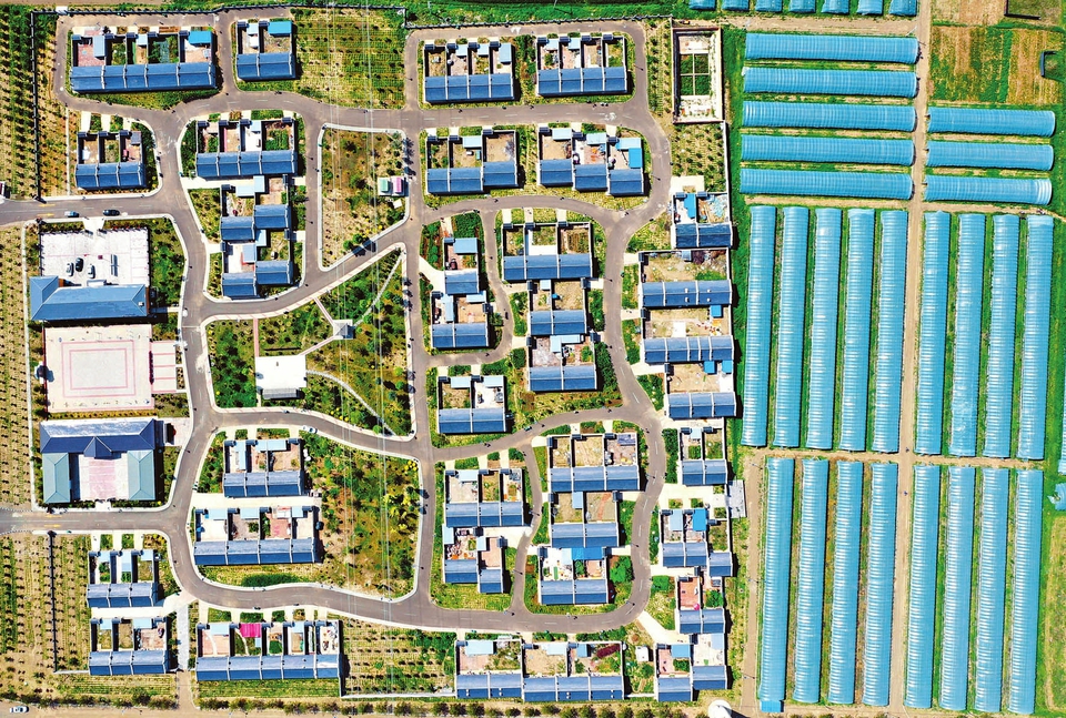 7月18日,俯瞰大同市陽高縣花苑村,設(shè)施農(nóng)業(yè)基地與移民新居共同舒展開一幅鄉(xiāng)村振興的美麗畫卷。該村合理規(guī)劃、做大做強(qiáng)種植業(yè),村集體出資建大棚、與村民合作經(jīng)營,真正實(shí)現(xiàn)“搬得出、穩(wěn)得住、能致富”。(記者劉通 通訊員王中勛攝)