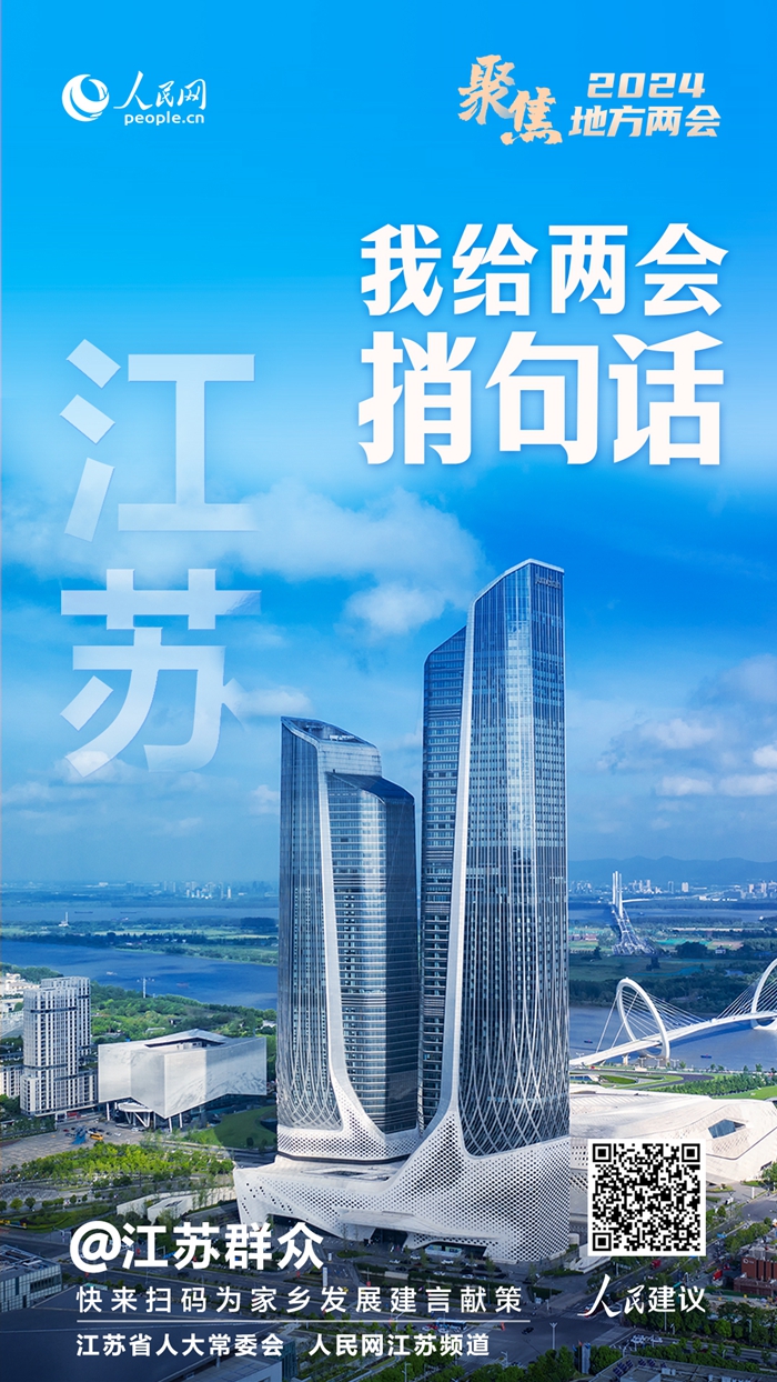 2024年江蘇省兩會(huì)即將召開。為廣泛匯集社會(huì)各界關(guān)于經(jīng)濟(jì)發(fā)展、民生保障、教育人才、科技創(chuàng)新、農(nóng)業(yè)農(nóng)村現(xiàn)代化等方面的好建議,即日起,人民網(wǎng)聯(lián)合江蘇省人大常委會(huì)推出“我給江蘇兩會(huì)捎句話”大型建言征集活動(dòng),廣大網(wǎng)友可通過人民網(wǎng)“領(lǐng)導(dǎo)留言板”小程序、“人民網(wǎng)+”客戶端等渠道,為家鄉(xiāng)發(fā)展積極建言獻(xiàn)策。