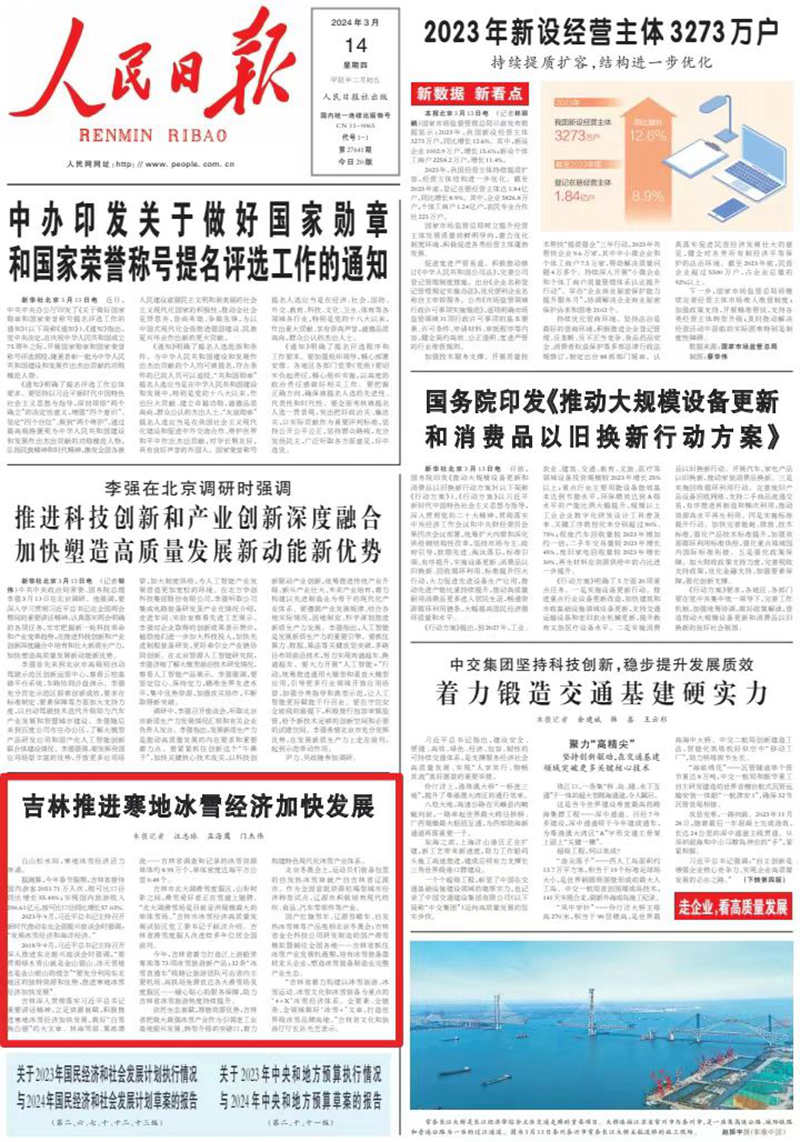 人民日報(bào)頭版聚焦吉林:寒地冰雪經(jīng)濟(jì)加快發(fā)展