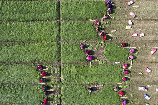 江蘇興化:蔥農(nóng)栽苗忙 走出“集體致富”新模式