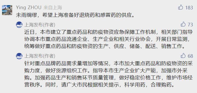 此外,“上海發(fā)布”微信公眾號還表示,近日,上海市建立了重點藥品和防疫物資應急保障工作機制,相關部門指導協調本市重點藥品流通企業(yè)、生產企業(yè)和相關行業(yè)協會,開展日常監(jiān)測,統(tǒng)籌做好重點藥品和防疫物資的生產、供應、儲備、配送、銷售工作。針對重點品牌藥品需求量增加等情況,上海市加大重點藥品和防疫物資的采購力度,做好貨源組織工作;指導上海市生產企業(yè)擴大產能,加強市外采購;加強藥品生產和銷售環(huán)節(jié)質量管理,做好穩(wěn)定價格工作,維護市場經營秩序。同時,請廣大市民根據相關提示,科學用藥,合理購藥。