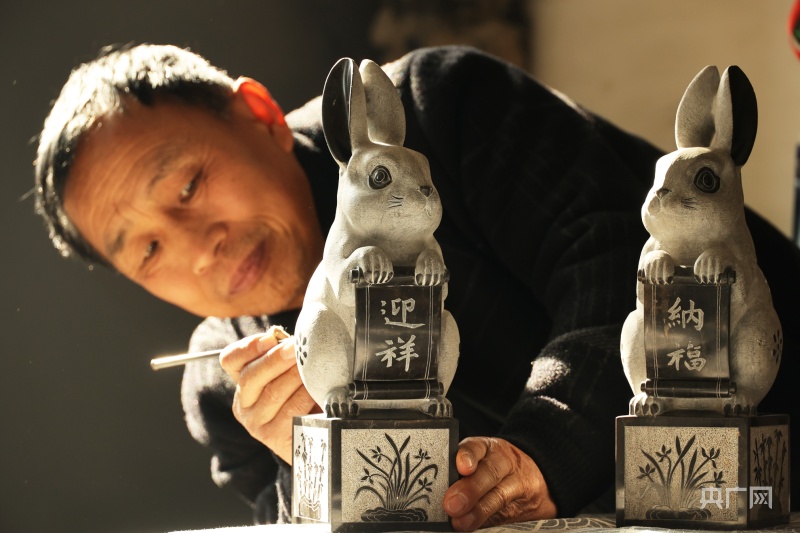 活靈活現(xiàn)的石雕生肖兔(央廣網(wǎng)發(fā) 高新生 攝)