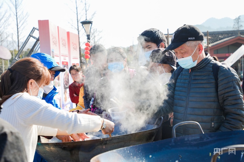 市民現(xiàn)場(chǎng)品嘗熱氣騰騰的大鍋燉魚(yú)(央廣網(wǎng)發(fā) 活動(dòng)主辦方供圖)