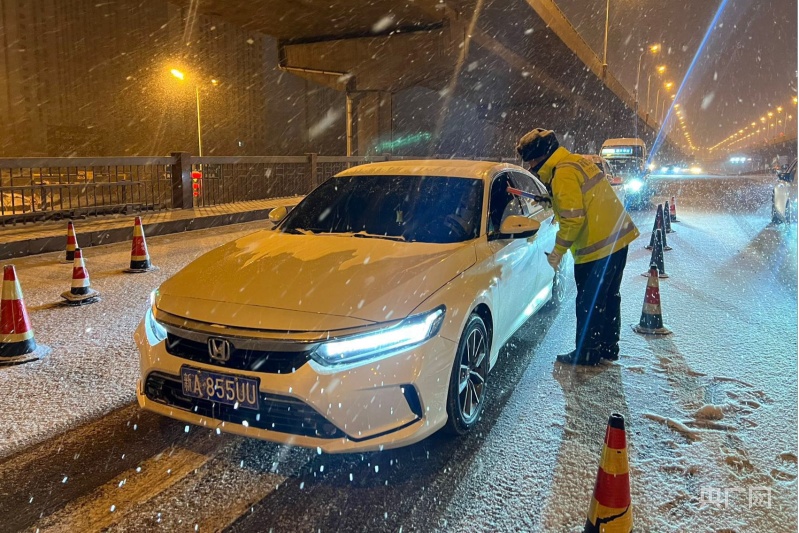 新疆烏魯木齊市水磨溝區(qū)交警大隊民警正在引導車輛有序通行(央廣網(wǎng)發(fā) 烏魯木齊市水磨溝區(qū)交警大隊 供圖)
