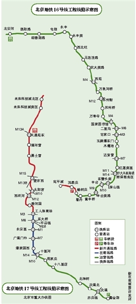 為17號(hào)線北段(未來科技城北區(qū)-工人體育場(chǎng))、16號(hào)線剩余段(榆樹莊-宛平城)