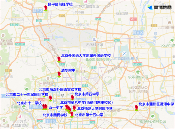 早間,中關(guān)村、廣渠門(mén)、什剎海、豐臺(tái)西南四環(huán)等學(xué)校較為集中的地區(qū)交通壓力突出。清華附中、北京四中、皇城根小學(xué)、十一學(xué)校、海淀外國(guó)語(yǔ)實(shí)驗(yàn)學(xué)校、師范大學(xué)第二附屬中學(xué)海淀學(xué)校、第十二中學(xué)科豐校區(qū)等校園周邊車(chē)流集中,校園門(mén)前道路容易出現(xiàn)行駛緩慢的情況。各中學(xué)周邊道路車(chē)流高峰將出現(xiàn)在7:00至7:30;小學(xué)周邊車(chē)流高峰普遍出現(xiàn)在7:30至8:00。
