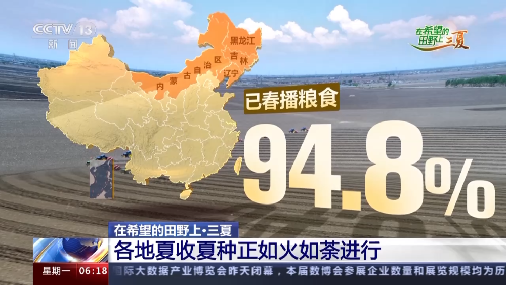 而在東北地區(qū),黑龍江、吉林、遼寧、內(nèi)蒙古春播糧食已接近尾聲,其中玉米的播種基本結(jié)束,大豆播種接近終點,水稻栽插則近九成。