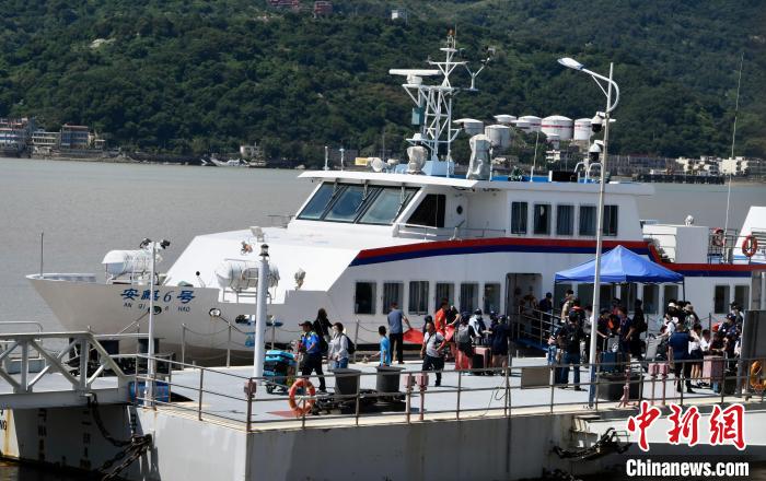 7月3日,“安麒6號”輪抵達福州馬尾瑯岐客運碼頭,馬尾-馬祖航線運送旅客突破666666人次?!≈行律缬浾? 王東明  攝