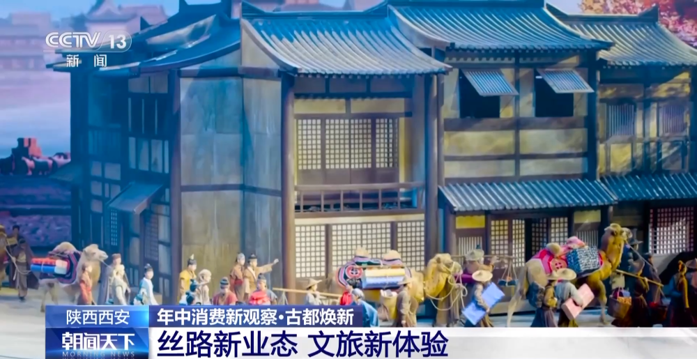 多元文化匯聚西安,帶來的不僅是進(jìn)口商品消費的火熱,更有精神文化的滋養(yǎng)。臺上正在演繹的實景歌舞劇《駝鈴傳奇》,以盛唐為背景,講述了商貿(mào)駝隊勇敢開拓絲路的故事。通過光影虛實依次呈現(xiàn),伴隨驚心動魄的故事,讓觀眾大呼過癮。