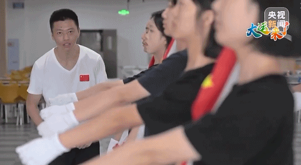 每個動作摳細節(jié),每天重復很多遍。訓練強度更大、要求越來越嚴,大學生們的精神狀態(tài)也愈發(fā)飽滿、愈發(fā)自信。