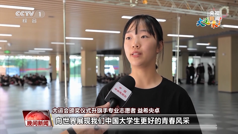 大運會頒獎儀式升旗手專業(yè)志愿者 益希央卓:要心里有信念才能把這件事做好。向世界展現(xiàn)我們中國大學生更好的青春風采。