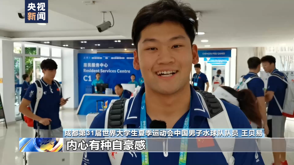 成都第31屆世界大學(xué)生夏季運動會中國男子水球隊隊員 王貝易:外面已經(jīng)看到我們中國隊的國旗了,內(nèi)心有種自豪感。