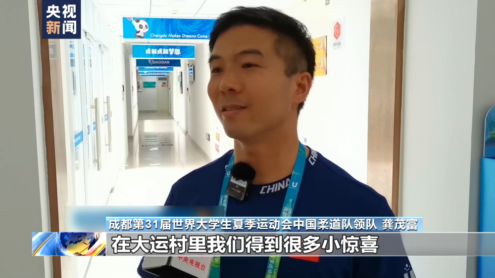成都第31屆世界大學(xué)生夏季運動會中國柔道隊領(lǐng)隊 龔茂富:在大運村里,我們得到很多小驚喜,我們的隊員都十分開心。