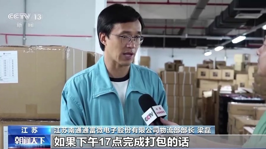 江蘇南通通富微電子股份有限公司物流部部長 梁磊:我們當(dāng)天的出貨,如果17點完成打包的話,當(dāng)天晚上12點前,基本就能到達(dá)深圳??蛻舻囊恍┨丶奔覀兩踔亮璩烤湍芘伤偷轿?。