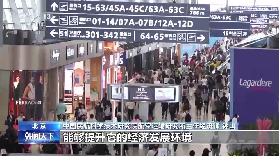 中國民航科學(xué)技術(shù)研究院航空運輸研究所主任經(jīng)濟師 鐘山:通過我們這種“干支通、全網(wǎng)聯(lián)”以及通程航班的模式,能夠讓我們?nèi)?、四線城市的旅客,融到整個國家的經(jīng)濟社會建設(shè)中,能夠提升它的經(jīng)濟發(fā)展環(huán)境。特別是從統(tǒng)一大市場的開放角度來看,這個是最終能夠促進(jìn)我們國內(nèi)市場的銜接。