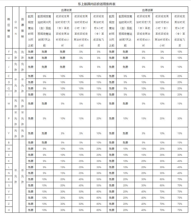 根據(jù)東航官網(wǎng)披露《自愿變更和自愿退票收費(fèi)標(biāo)準(zhǔn)》,所有艙位在航班規(guī)定離站時(shí)間30天之前,皆可退票或者免費(fèi)變更;起飛前7天到30天之內(nèi)的,部分艙位免費(fèi)退票或者改簽,部分收取5%~20%的退票費(fèi)或者5%~10%的改簽費(fèi)。