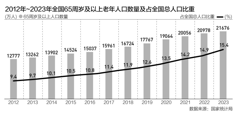 國家統(tǒng)計(jì)局發(fā)布最新人口數(shù)據(jù)顯示,60歲及以上人口29697萬人,占全國人口的21.1%,其中65歲及以上人口21676萬人,占全國人口的15.4%。根據(jù)聯(lián)合國關(guān)于老齡化的劃分標(biāo)準(zhǔn),我國已經(jīng)進(jìn)入了中度老齡社會(huì)。