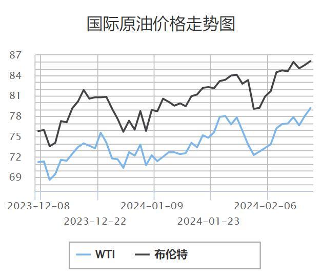 本周期橫跨春節(jié)假期前后,原油市場整體偏強運行。截至上周五(當?shù)貢r間2月16日)收盤,WTI 3月原油期貨收漲1.16美元,漲幅1.49%報79.19美元/桶;布倫特4月原油期貨收漲0.61美元,漲幅0.74%報83.47美元/桶。