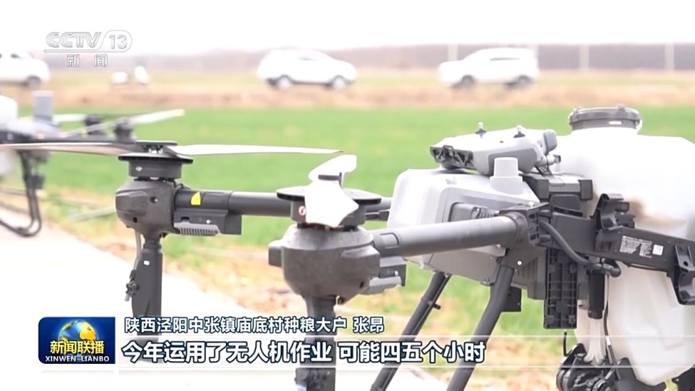 陜西涇陽(yáng)中張鎮(zhèn)廟底村種糧大戶 張昂:往年我們用的人工噴灑,作業(yè)時(shí)間長(zhǎng),而且成本也比較高,今年運(yùn)用了無(wú)人機(jī)作業(yè),可能四五個(gè)小時(shí),把我這兩千畝麥田的作業(yè)就基本完成了,而且還省錢。