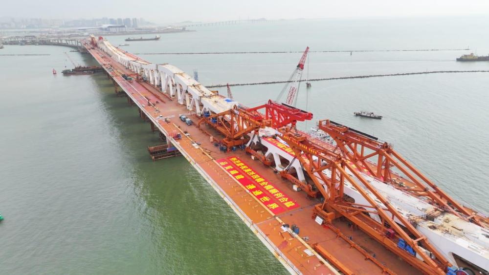 澳氹第四條跨海大橋連接澳門新城填海A區(qū)、填海E區(qū)以及港珠澳大橋人工島口岸區(qū),是構建澳門城市交通體系的關鍵節(jié)點。該大橋于3月12日順利實現(xiàn)全橋合龍,由主體結構工程全面邁入橋梁附屬結構工程。(總臺記者 劉冰清)