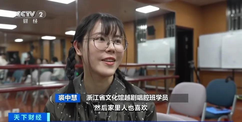 浙江省文化館越劇唱腔班學(xué)員 裘中慧:自己很想來體驗(yàn)一下越劇,家里人也喜歡,主要想學(xué)會了唱給家里人聽。