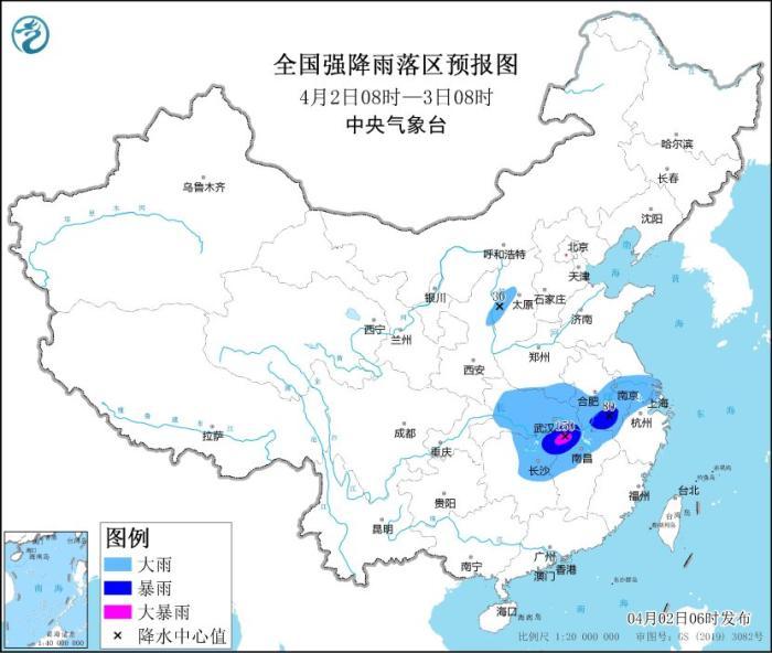 4月2日08時至3日08時,內(nèi)蒙古東北部、西藏東部、甘肅河西、青海中南部、川西高原北部等地部分地區(qū)有小雪或雨夾雪,其中,西藏東南部、青海東南部、甘肅西南部等地部分地區(qū)有中到大雪(5~8毫米)。陜西東部、山西西部、黃淮南部、江淮大部、江漢、江南北部、四川盆地東部、重慶東北部等地部分地區(qū)有中到大雨,其中,湖北東南部、湖南東北部、安徽東南部、江西東北部等地部分地區(qū)有暴雨,局地大暴雨(100~150毫米)。內(nèi)蒙古東北部部分地區(qū)有4~5級風(fēng)。