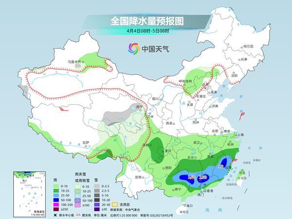 后天,內(nèi)蒙古東北部、黑龍江西北部、新疆北疆東部和沿天山地區(qū)、西藏北部、青海東部和南部、甘肅南部、川西高原北部等地部分地區(qū)有小雪或雨夾雪。西藏東南部、江南大部、四川盆地西南部、華南北部和南部等地部分地區(qū)有中到大雨,其中,福建西北部、廣西東部、廣東中部和西北部等地部分地區(qū)有暴雨或大暴雨(100~150毫米)。