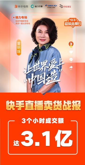 董明珠快手帶貨3小時成交破3億 老鐵消費(fèi)力刷新認(rèn)知