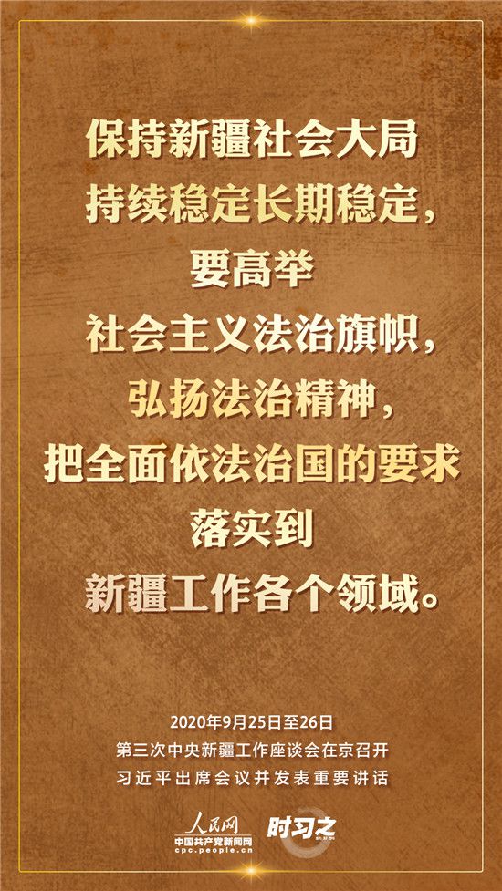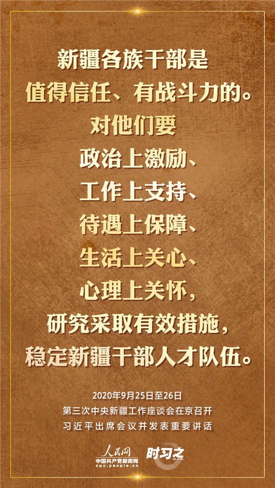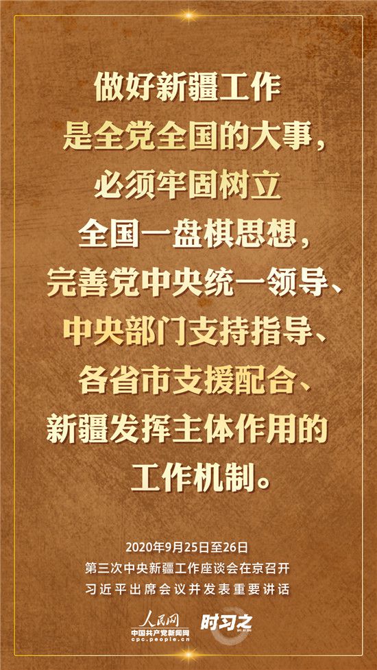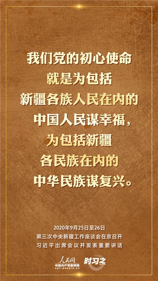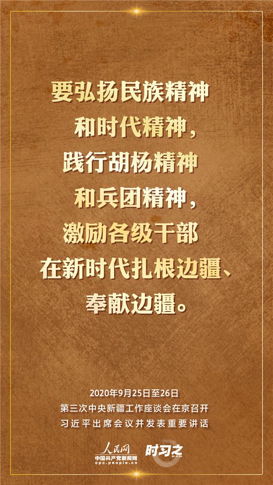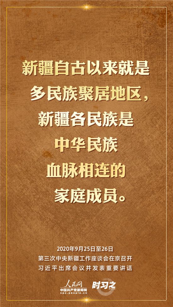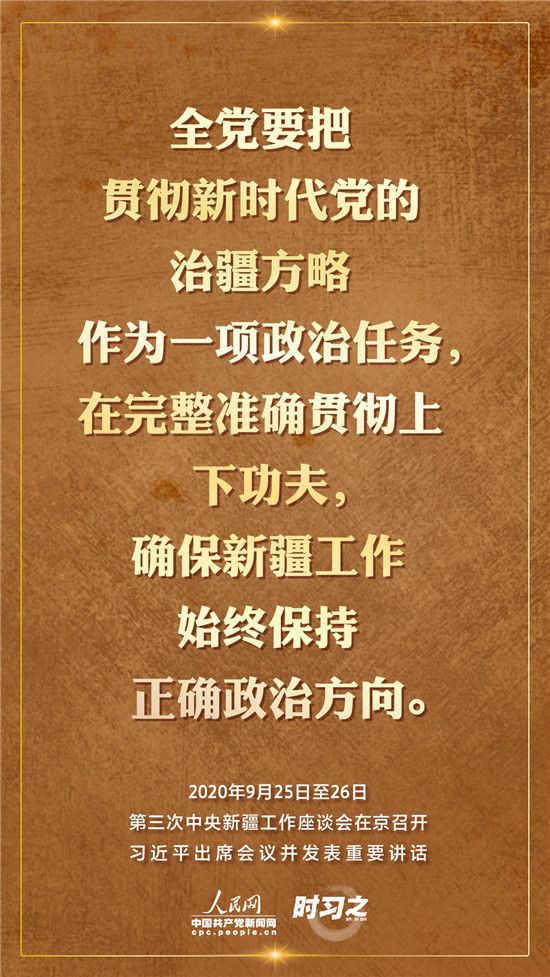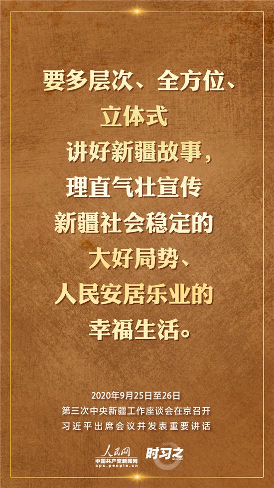 9月25日至26日,第三次中央新疆工作座談會在北京召開。習近平總書記出席會議并發(fā)表重要講話。習近平全面總結了第二次中央新疆工作座談會以來新疆工作取得的重大成效,深入分析了當前新疆工作面臨的形勢,闡釋了新時代黨的治疆方略,明確了當前和今后一個時期新疆工作的指導思想、目標任務、方針政策、戰(zhàn)略舉措,全面部署了推動新疆社會穩(wěn)定和長治久安的重點工作。人民網(wǎng)·中國共產(chǎn)黨新聞網(wǎng)“時習之”欄目帶您聆聽總書記那些直抵人心的講話金句。