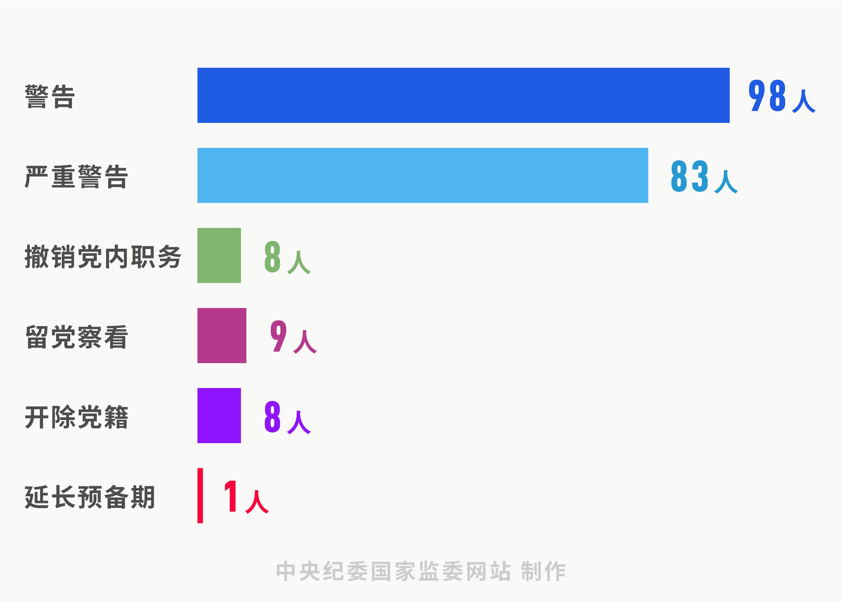 分析處分類型,受到黨紀(jì)處分的共計(jì)207人,其中,警告98人,嚴(yán)重警告83人,撤銷黨內(nèi)職務(wù)8人,留黨察看9人,開(kāi)除黨籍8人,延長(zhǎng)預(yù)備期1人;受到政務(wù)處分的共計(jì)42人,其中33人同時(shí)受到黨紀(jì)處分;12人受到誡勉談話、談話提醒、調(diào)離崗位等處理。運(yùn)用第一、二種形態(tài)處理人數(shù),占處理總?cè)藬?shù)的92%。用足用好“四種形態(tài)”,咬耳扯袖、紅臉出汗已成常態(tài),監(jiān)督執(zhí)紀(jì)更加精準(zhǔn),使更多干部受到警醒,體現(xiàn)的是嚴(yán)管和厚愛(ài)結(jié)合。