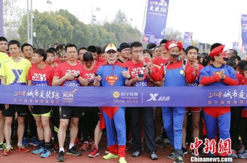 中新網(wǎng)3月27日電 近日,由蘇寧體育聯(lián)合特步中國全力打造的首屆2018蘇寧體育“城市變裝跑”在南京綠博園內(nèi)盛大舉行。這是一場觸發(fā)能量、喚醒春意的體育賽事,不僅是運(yùn)動(dòng)愛好者的嘉年華,更是一場全民參與的趣味活動(dòng)。