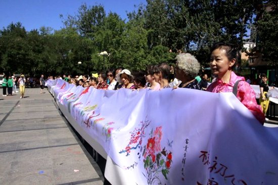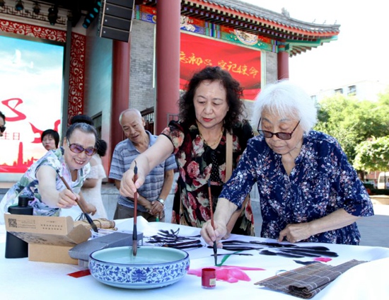 人民網(wǎng)北京6月30日電 6月30日上午,石景山區(qū)八角街道舉辦“百米畫卷繪初心”——老街坊手繪畫卷獻(xiàn)禮黨的生日活動(dòng),百余名老街坊揮毫潑墨祝福黨的生日,生動(dòng)地描繪出對(duì)黨對(duì)祖國(guó)的深情厚意。
