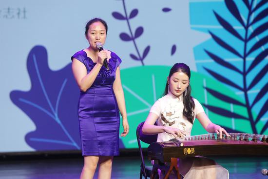 繪本劇也是在閱讀的基礎(chǔ)上延展的一種表演形式,是“閱讀+”的一次探索。本次活動(dòng)的主持人,來自中央廣播電視總臺的主持人賀超,邀請中央音樂學(xué)院音樂教育學(xué)者管慧丹和青年古箏演奏家侯奕上臺,為大家展示 “閱讀+”的另一種表演形式——古詩詞唱讀。伴隨著悠揚(yáng)的古箏琴聲,全場吟唱,在座的每位觀眾都深深地感受到中國傳統(tǒng)文化的魅力。