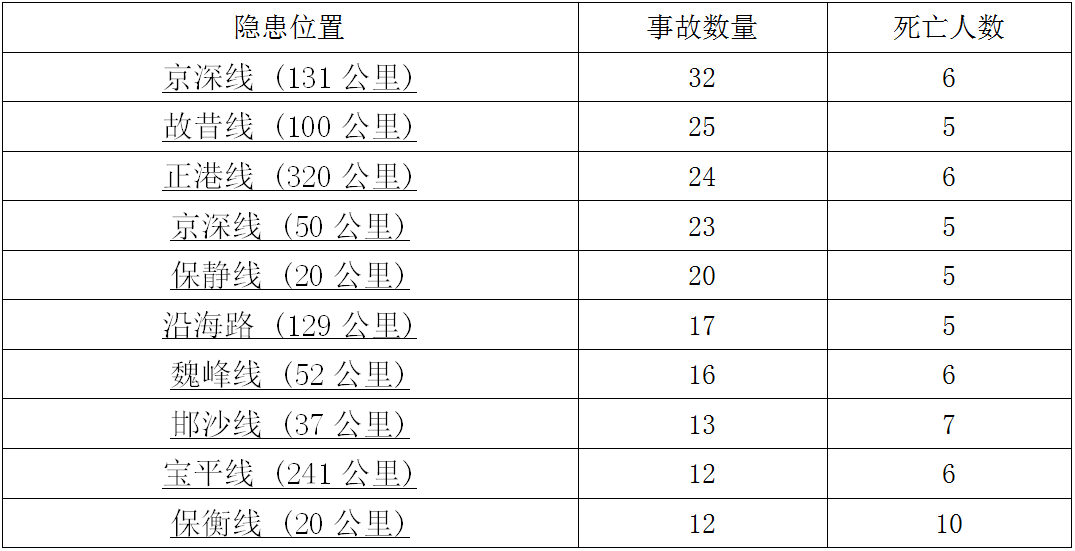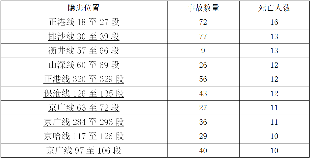 1公里死亡5人以上的事故多發(fā)點(diǎn)