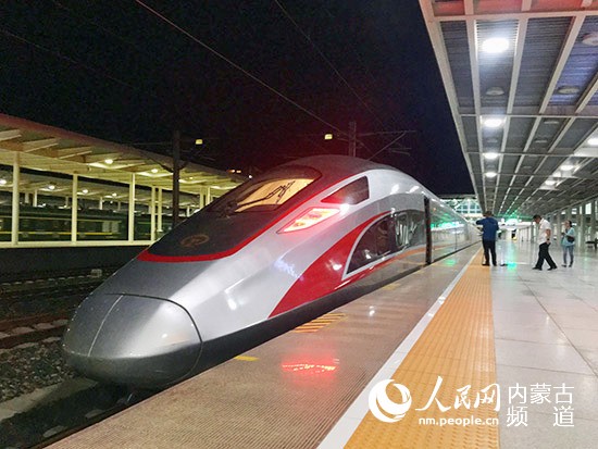 人民網(wǎng)呼和浩特6月19日電 6月18日22時10分,由CR400AF-2017動車組擔當?shù)?D1604/1次列車從呼和浩特東動車所駛出,計劃對張呼高鐵進行兼容性試驗,這也是復(fù)興號動車組列車首次“探訪”草原高鐵。
