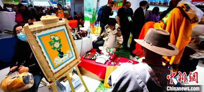 19日,來(lái)自高原的特色產(chǎn)品成為展館里一道亮麗的風(fēng)景線。各地的游客在展區(qū)近距離與非遺傳承人溝通,深入了解西藏文化資源、旅游資源。