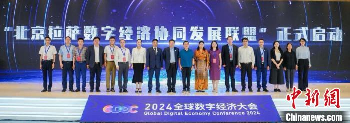 圖為“北京拉薩數(shù)字經(jīng)濟(jì)協(xié)同發(fā)展聯(lián)盟”正式啟動。大會組委會供圖