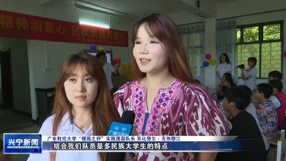 實踐團隊員蘇比努爾 克熱穆江介紹到:在廣財大,校內石榴樹生機勃勃,校園有“榴園”的雅稱。我們的隊員是來自廣財的各民族大學生,是“榴園”內的“石榴籽”,因此老師為我們取名“榴園之籽”實踐團。