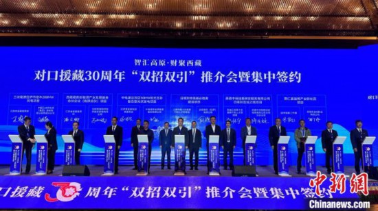 對口援藏30周年“雙招雙引”推介會暨集中簽約活動15日在拉薩舉行。此次推介會集中簽約援藏招商引資項(xiàng)目18個(gè)、協(xié)議投資104.07億元(人民幣,下同)。
