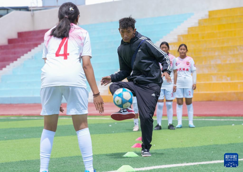 如今,球隊的發(fā)展得到了學校和社會的支持,為她們提供了更多機會和平臺。球隊教練王劍平是一名上海援藏教師,他感慨道:“很多孩子因球結(jié)緣,一個足球,一群伙伴,編織了她們的足球夢想。這些孩子年齡雖小,但她們能吃苦、肯付出。烈日下,她們就像堅強的格?;ò憔`放。”