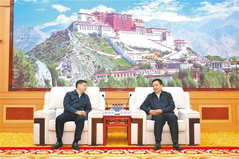 9日下午,自治區(qū)黨委書(shū)記王君正在拉薩與中國(guó)寶武鋼鐵集團(tuán)黨委書(shū)記、董事長(zhǎng)胡望明一行座談。