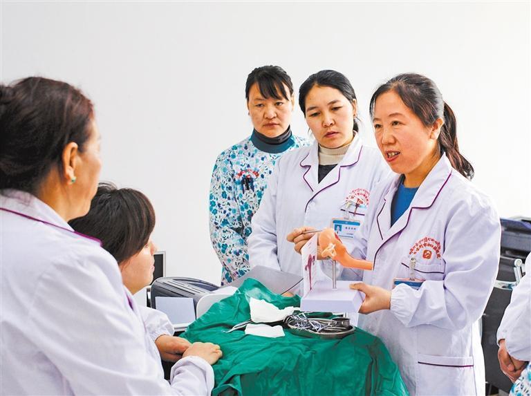 4月17日,山東援藏醫(yī)療專家、日喀則市婦幼保健院婦女保健部主任孔艷(右一)在現(xiàn)場(chǎng)帶教。在山東援藏的幫扶下,該院成功創(chuàng)建二甲醫(yī)院。經(jīng)濟(jì)日?qǐng)?bào)記者 袁勇 攝